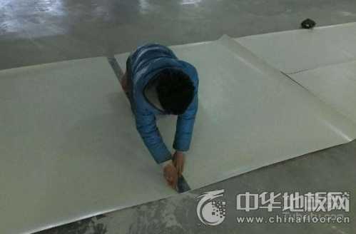待地面和地板背面的粘结剂手触似粘非粘的情况下开始铺设地板。从中心位置开始相邻间距为地板尺寸,铺设时从中位置开始逐块向四周展开,若需焊接,每块地板间的间隙为2-3mm,边贴边用橡胶榔头敲打以保证地板间的粘结牢固,直至整个房间施工完毕;