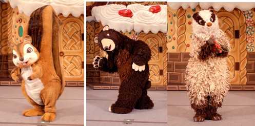 森林里的动物朋友们:有熊、松鼠和浣熊,是一群善良的动物,它们尝试着帮助亨赛尔和格蕾特尔。
