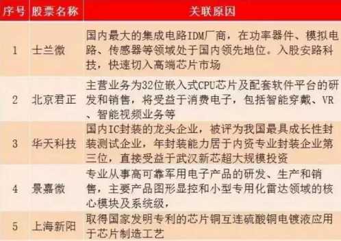 2、芯片概念股