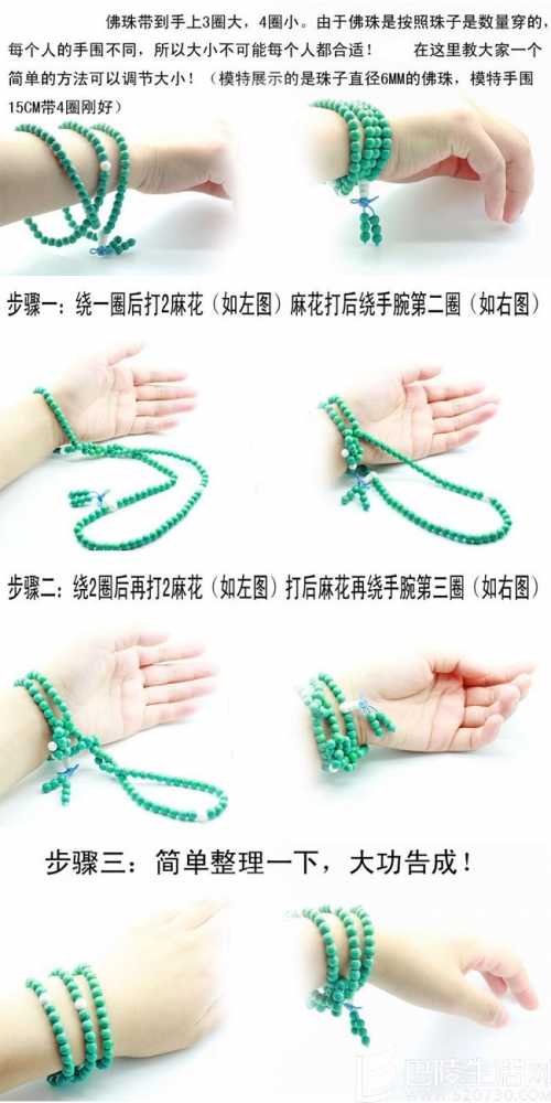 108颗佛珠手链一般适合缠绕3-4圈,适合左右手佩戴,至于选择哪只手,那就看个人喜好了。由于佛珠是按照珠子的数量穿的,每一个人的手围不同,所以大小不可能每个人都合适!佩戴方法如图:
