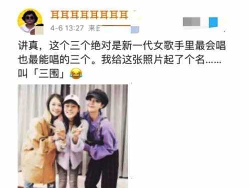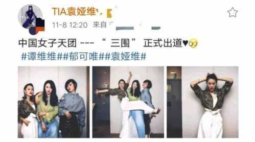 其实这个名字是她们自己取的,因为郁可唯放上和谭维维袁娅维两位女歌手的合照,并开玩笑称“中国女子天团 ,三围正式出道”,这才有了网友戏称的“三围”女子天团。