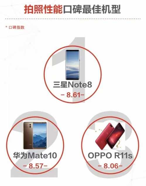 先看游戏性能口碑,上榜前三甲的有华为Meta10和小米6,华为Meta10的口碑更好。再看拍照性能口碑,仍然是华为Meta10上榜,小米没有上榜,说明拍照性能上华为口碑更好。