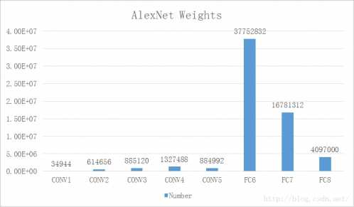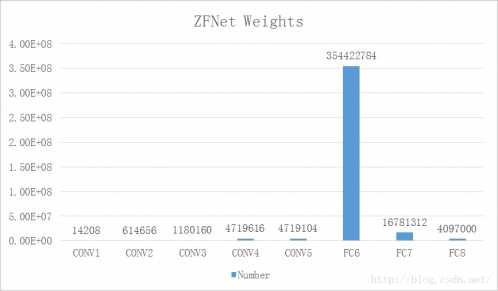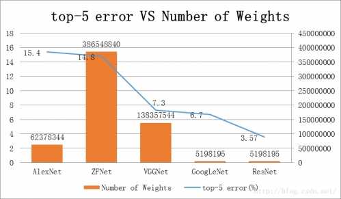 图5-2 几种结构ImageNet top5 error与权重总数统计(GooLeNet、ResNet权重总数不准确)